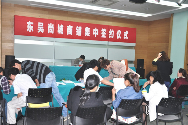 5月9日上午,由開(kāi)發(fā)公司投資建設(shè)的園區(qū)公舍配套商業(yè)樓—東吳尚城商鋪集中簽約活動(dòng)在管委會(huì)一樓會(huì)議室火熱舉行,眾多客戶(hù)熱情高漲,率先簽約,現(xiàn)場(chǎng)氛圍緊張急切。