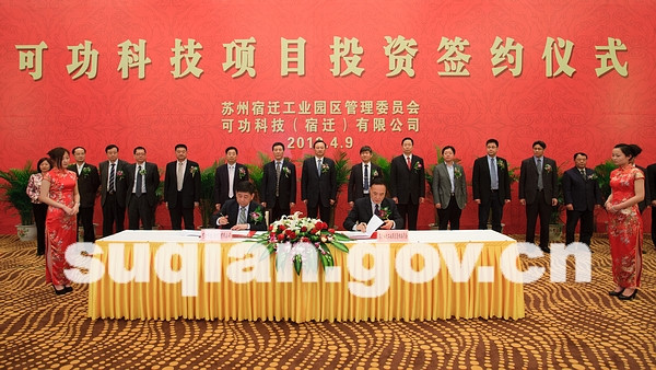 市委書記、市人大常委會(huì)主任繆瑞林在簽約儀式上發(fā)表講話,向可功科技項(xiàng)目正式簽約表示熱烈祝賀。繆瑞林說(shuō),可功科技項(xiàng)目的簽約,是蘇宿工業(yè)園區(qū)開(kāi)發(fā)建設(shè)史上的又一件大事,對(duì)于推進(jìn)蘇宿工業(yè)園區(qū)乃至全市產(chǎn)業(yè)層次的提升具有十分重要的意義。近年來(lái),宿遷致力打造創(chuàng)業(yè)最寬松、社會(huì)最文明、人居最安全和低生產(chǎn)成本、低交易成本、低行政成本、低社會(huì)成本的“三最四低”投資環(huán)境,吸引了越來(lái)越多的生產(chǎn)要素加速集聚,推動(dòng)了經(jīng)濟(jì)社會(huì)超常規(guī)、跨越式發(fā)展。臺(tái)灣可成集團(tuán)是國(guó)際知名的重大企業(yè),該集團(tuán)于2008年在蘇宿工業(yè)園區(qū)投資興建的可成科技(宿遷)有限公司,如今已經(jīng)發(fā)展成為我市投資最多、規(guī)模最大、起點(diǎn)最高、配套最完善的臺(tái)資企業(yè),為我市進(jìn)一步招引臺(tái)資、壯大外資發(fā)揮了十分重要的引領(lǐng)示范作用。此次,可成集團(tuán)再次投資3億美元興建可功科技項(xiàng)目,充分體現(xiàn)了可成集團(tuán)投資宿遷的信心和決心,這既是企業(yè)加快戰(zhàn)略擴(kuò)張的重大舉措,也是蘇州、宿遷兩地合作共建結(jié)出的又一豐碩成果,不僅為蘇宿工業(yè)園區(qū)壯大高新技術(shù)產(chǎn)業(yè)注入了新的動(dòng)力,也必將為我市加快新型工業(yè)化進(jìn)程起到重要的促進(jìn)作用。