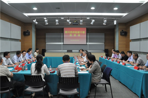 6月15日下午,受蘇州市委常委、組織部長陸新委托,蘇州市委組織部周昌明副部長一行3人來宿,在園區(qū)管委會一樓會議室召開座談會,專程看望慰問蘇州派駐宿遷掛職干部。宿遷市委常委、組織部長李健陪同慰問,副市長、蘇宿工業(yè)園區(qū)黨工委書記、管委會主任方文浜主持座談會。