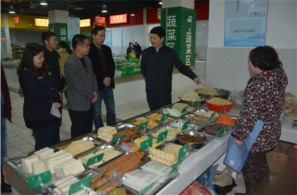 戈亮一行現(xiàn)場(chǎng)聽(tīng)取了菜場(chǎng)負(fù)責(zé)人開(kāi)業(yè)準(zhǔn)備工作情況匯報(bào),實(shí)地察看了生鮮菜場(chǎng)規(guī)劃布局、開(kāi)業(yè)方案、食品安全臺(tái)賬、食品安全檢測(cè)室設(shè)備,與各經(jīng)營(yíng)戶(hù)親切交談。